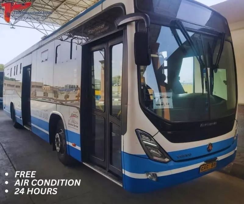 - الشاتل باص: خدمة مجانية تعمل على مدار الساعة بـ14 حافلة حديثة مكيفة، تنقل الركاب بين مرافق المطار المختلفة مرورًا بـ12 محطة رئيسية،موقف النقل العام (والذى تنتقل منه اتوبيسات هيئة النقل العام والسوبر جيت لميادين القاهرة الرئيسية والمحافظات المختلفة)