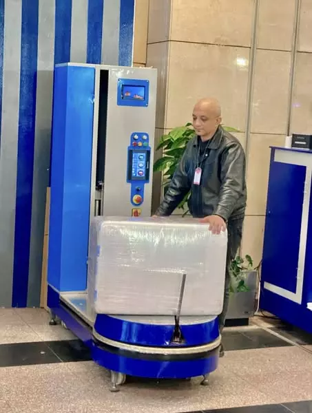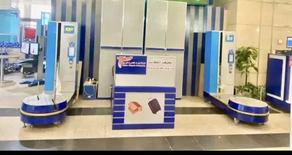تم تركيب 21 ماكينة لتغليف الحقائب في جميع صالات السفر، باستخدام بلاستيك مقاوم للماء والتلف، لحماية الأمتعة وتسهيل تمييزها.