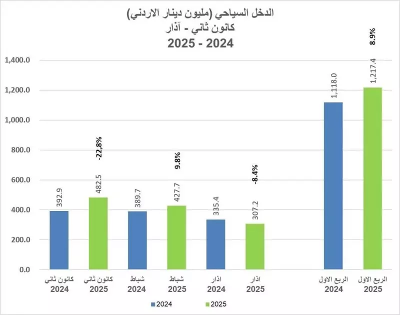 وقد بلغ الدخل السياحي خلال الربع الأول (كانون الثاني – آذار) من هذا العام نحو 1.217 مليار دينار بنسبة ارتفاع بلغت 8.9 %، مقارنة بنفس الفترة من عام 2024، حيث بلغ الدخل السياحي 1.118 مليار دينار.