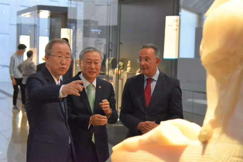 استقبل المتحف المصري الكبير بان كي مون، الأمين العام الأسبق للأمم المتحدة، والوفد المرافق له، وذلك بحضور السيد كيم يونغ هيون، سفير جمهورية كوريا الجنوبية لدى مصر، وذلك على هامش زيارته الرسمية إلى القاهرة.