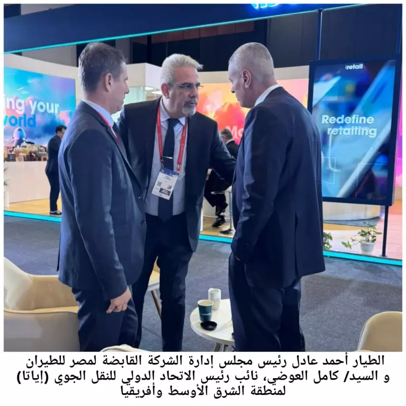 وعلى هامش فعاليات الجمعية العامة، عقد الطيار أحمد عادل عدة لقاءات ثنائية من بينها لقاء مع السيد/ كامل العوضي، نائب رئيس الاتحاد الدولي للنقل الجوي (إياتا) لمنطقة الشرق الأوسط وأفريقيا، حيث تم مناقشة التحديات التي تواجه شركات الطيران في المنطقة، وسبل تعزيز التعاون مع (إياتا) في مجالات السلامة، والتدريب، والتحول الرقمي، إضافة إلى دعم جهود مصر للطيران ضمن خطة التحول نحو طيران مستدام.