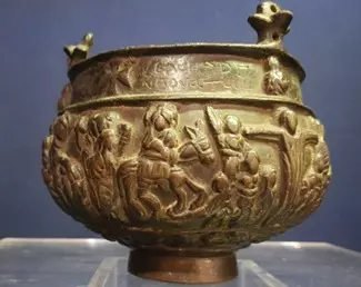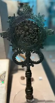 يعرض مبخرة من البرونز عليها نقوش تمثل موضوعات من حياة السيد المسيح منها المجيء إلى مصر.