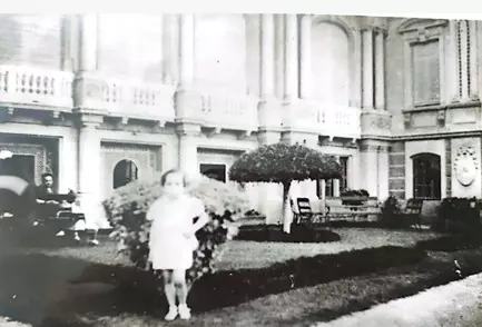 يعرض صوره أرشيفيه من الألبوم الشخصي للنبيلة فاطمة حيدر (صاحبه القصر) والتي تصور ابنتها وهي واقفه بحديقة القصر.
