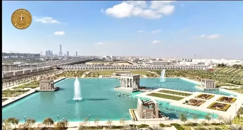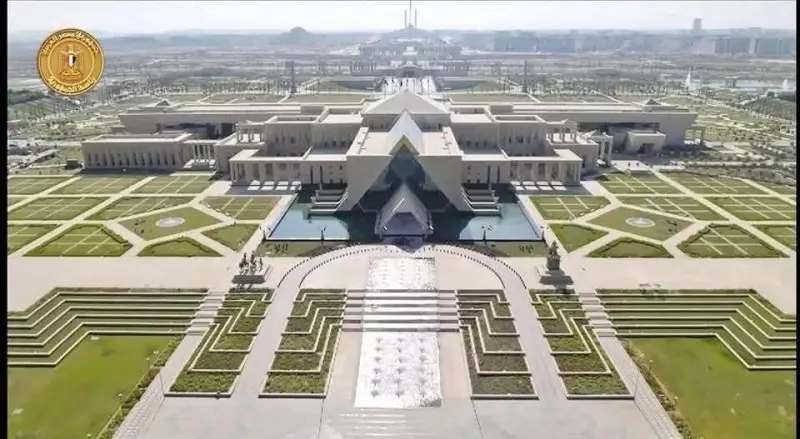 📷 الصورة: الواجهة الأمامية للقصر الرئاسي بالعاصمة الإدارية – تصميم هرمي وقبة مركزية وحدائق ممتدة.