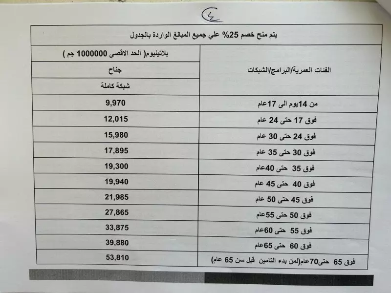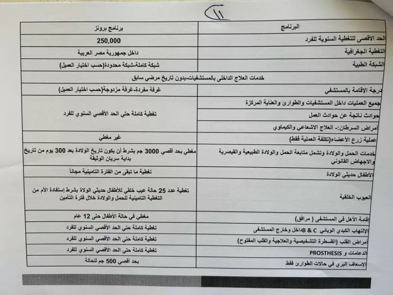 يقدم خدمة طبية للفرد طوال عام بقيمة مليون جنيه مقابل سداد مبلغ سنوى (اشتراك) يبدأ حسب عمر العميل من 9,970 جنيه وحتى 53,810 جنيها