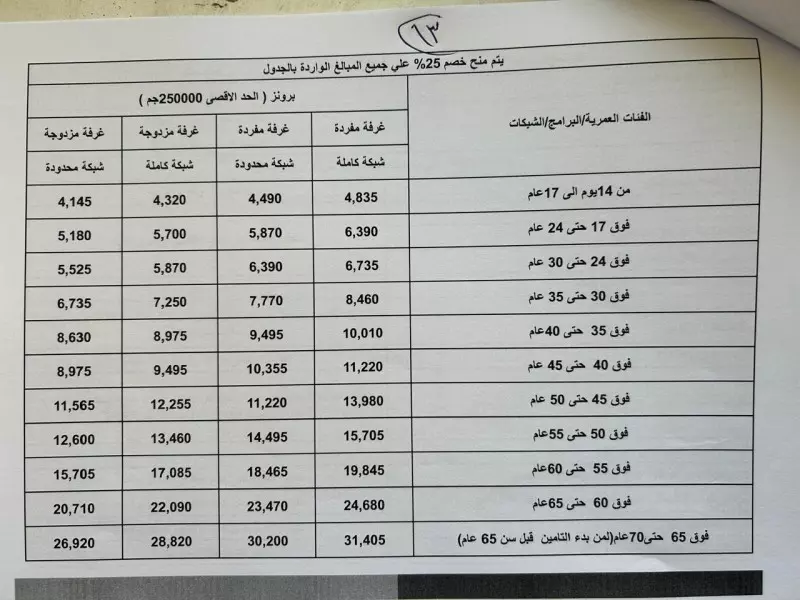 يقدم خدمة طبية خلال عام بقيمة مالية 250 ألف جنيها مقابل سداد مبلغ سنوى ( اشتراك) حسب عمر العميل من 4,835 جنيه وحتى 24,680 جنيها
