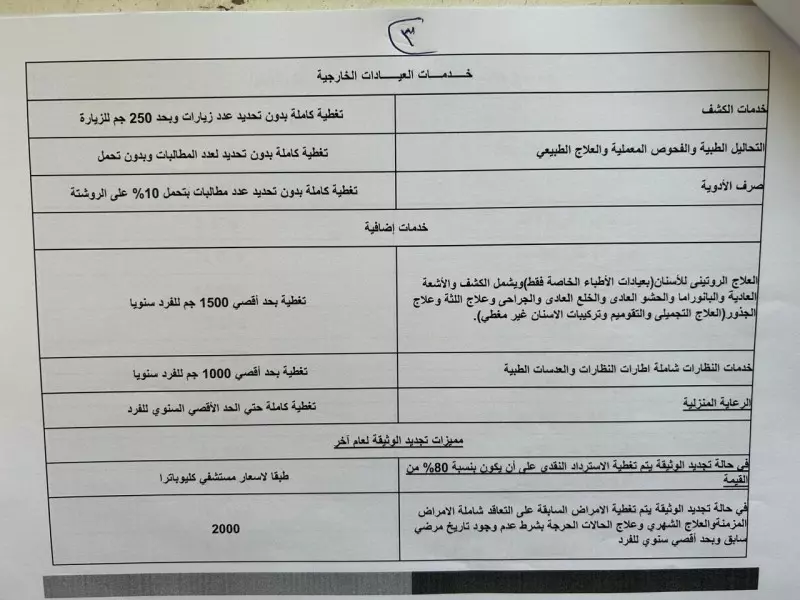 يقدم خدمة طبية للفرد طوال عام بقيمة 750 ألف جنيها مقابل سداد مبلغ سنوى( اشتراك) حسب عمر العميل من 8,440 جنيه وحتى 35,920 جنيها