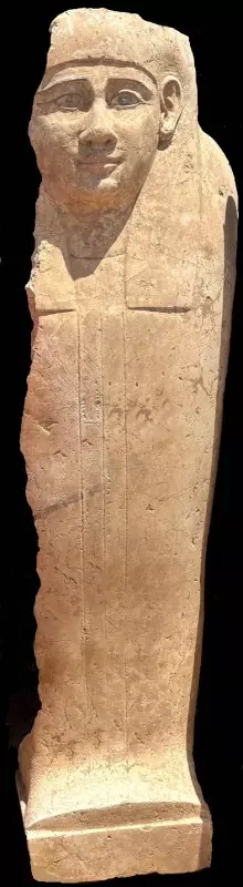 وفي داخل المقبرة، عُثر على تابوت من الحجر الجيري يبلغ ارتفاعه نحو مترين، موضوع فوق منصة صخرية نُحتت مباشرة في الجبل، ويتميز بغطاء على هيئة آدمية يحمل ملامح واضحة لوجه إنسان مزين بباروكة وزخارف مذهلة، بالإضافة إلى عمودين من النصوص الهيروغليفية التي تسجل أدعية للآلهة المحلية بمنطقة أسوان، واسم صاحب المقبرة “كا-مِسيو”، وهو أحد كبار المسؤولين في عصره، إلى جانب أسماء أفراد من أسرته.