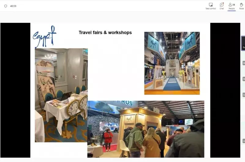 وشارك في الجلسات كمتحدثين كل من الأستاذة هالة الخطيب المدير التنفيذي للاتحاد المصري للغرف السياحية، والسيد محمد محسن مدير عام المكاتب الخارجية بالهيئة المصرية العامة للتنشيط السياحي، والدكتور محمد عطا مدير وحدة المنتجات السياحية بالهيئة المصرية العامة للتنشيط السياحي، والأستاذة شيرين عثمان من فريق العلاقات العامة بالمتحف المصري الكبير.