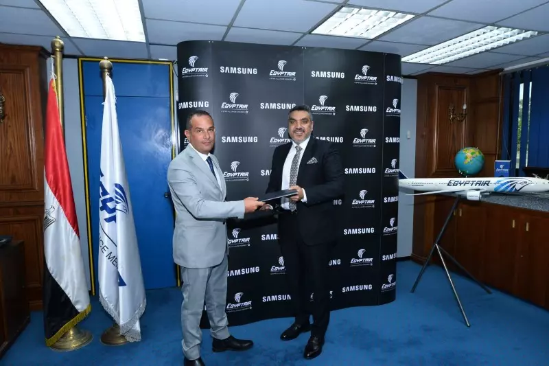 وأقيمت مراسم الاحتفال بالمقر الإداري لمصر للطيران، بحضور لفيف من ممثلي الشركتين، على رأسهم من جانب شركة سامسونج إلكترونيكس مصر السيد/أحمد جعفر الرئيس التنفيذي لقطاع التسويق والتجارة الإلكترونية، والدكتور/ أيمن بكري رئيس قطاع التجزئة والتسويق للأجهزة المنزلية، ومن جانب مصر للطيران السيد/ عمرو عدوي، رئيس قطاع الشئون التجارية بشركة مصر للطيران للخطوط الجوية، والسيد/ أحمد وجدي، مدير عام التسويق بشركة مصر للطيران للخطوط الجوية.