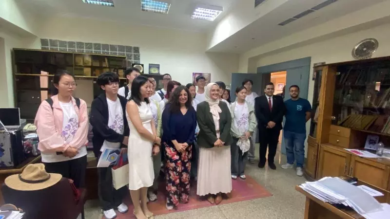 وأبهر الطالب بولا برسوم الوفد الصيني بعرض شيق حول تاريخ جامعة القاهرة، متوقفًا عند أبرز معالمها مثل “الساعة” الشهيرة، القبة التاريخية، والكليات المجاورة.