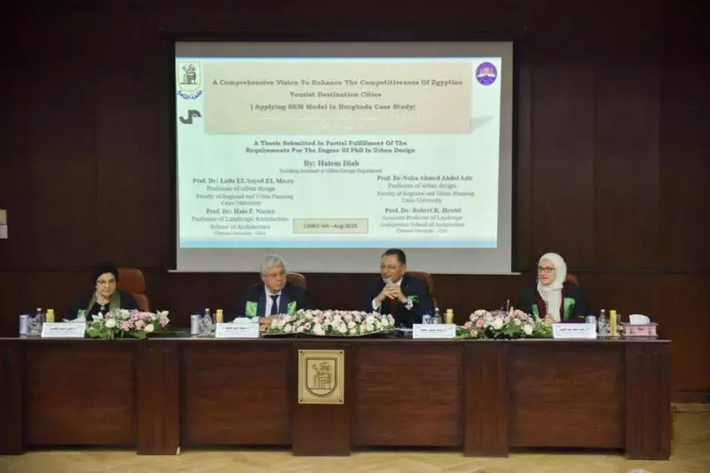 وجاء موضوع رسالة الدكتوراه تحت عنوان: “رؤية شاملة لدعم التصنيف والتنافسية السياحية لمدن المقاصد السياحية المصرية باستخدام تطبيق نمذجة البيانات – دراسه حالة مدينة الغردقة المصرية”.
