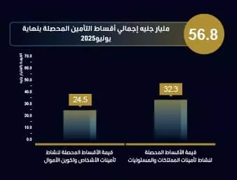 56.8 مليار جنيه إجمالي أقساط التأمين المحصلة بنهاية يونيو2025