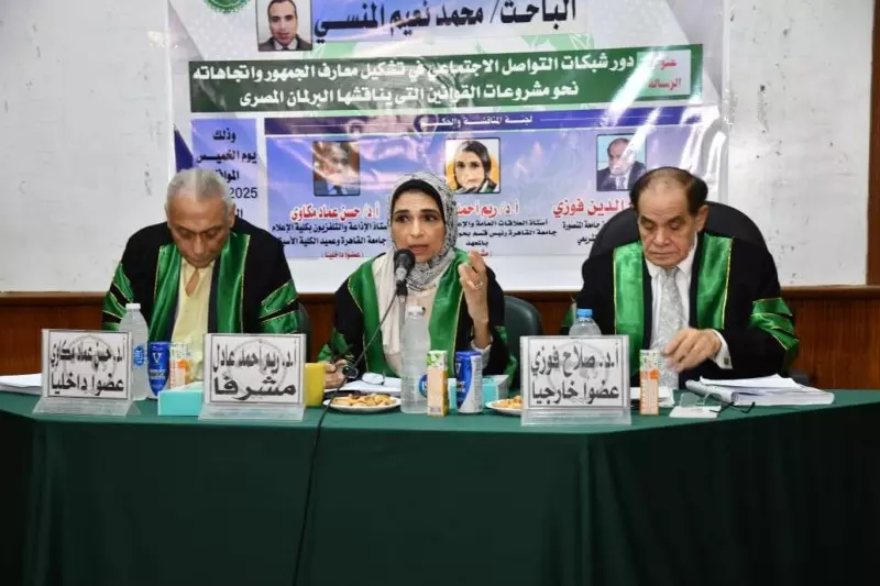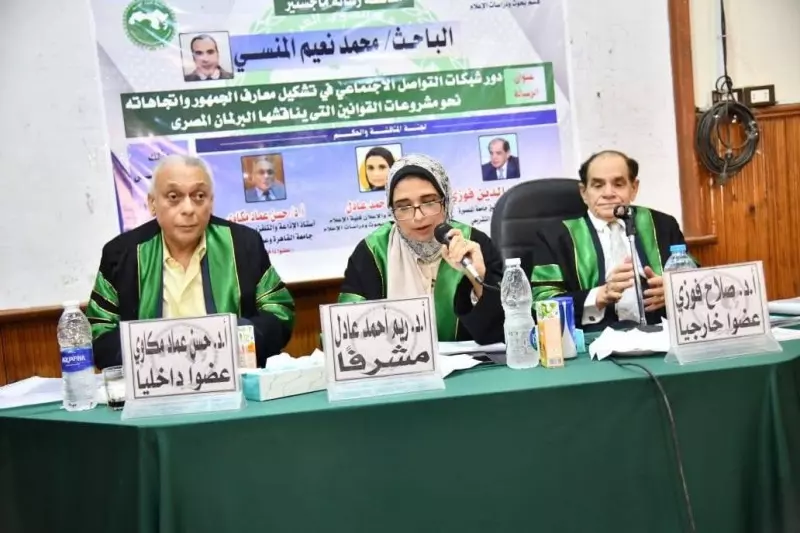 وأعرب الباحث عن سعادته بنيل الدرجة العلمية، موجهاً شكره وتقديره للجنة المناقشة الموقرة، ومؤكدًا أن موضوع رسالته يأتي مواكبًا للتحولات الكبرى في المشهد الإعلامي، ودور وسائل التواصل الاجتماعي في تشكيل الرأي العام وصناعة اتجاهات الجمهور نحو قضايا التشريع.