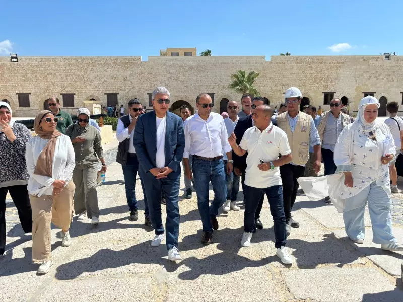 وعقب انتهاء جولته بالمتحف، توجه الوزير والوفد المرافق له لزيارة قلعة قايتباي حيث استمع الي شرح مفصل من الدكتور محمد متولي مدير عام آثار الاسكندرية للآثار الإسلامية والقبطية عن آخر مستجدات أعمال مشروع ترميم القلعة والتوقيتات الزمنية المحددة للانتهاء منه، كما شملت الجولة زيارة الأسوار الداخلية والخارجية والبرج الرئيسي والمسجد والصهريج بالإضافة إلى تفقد الخدمات السياحية بالقلعة منها اللافتات الإرشادية ومركز الزوار والتي تم افتتاحه مؤخراً بعد تطويره ليستعرض المعلومات اللازمة عن عدد من المنشآت الأثرية الفريدة بالإسكندرية وتطور التحصينات الدفاعية بمدينة الإسكندرية، مركزاً على الدور التاريخي لقلعة قايتباي، إلى جانب التحصينات التي شُيّدت في عهد محمد علي باشا على امتداد الساحل الشمالي.