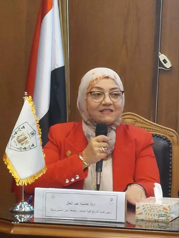 • الدكتورة عائشة عبد العال أستاذ علم المصريات ورئيس قسم التاريخ السابق بكلية البنات جامعة عين شمس.