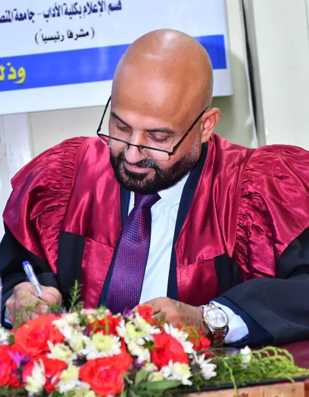 أ.د. مجدي الداغر، أستاذ ورئيس قسم الإعلام بكلية الآداب جامعة المنصورة – مشرفًا وعضوًا.