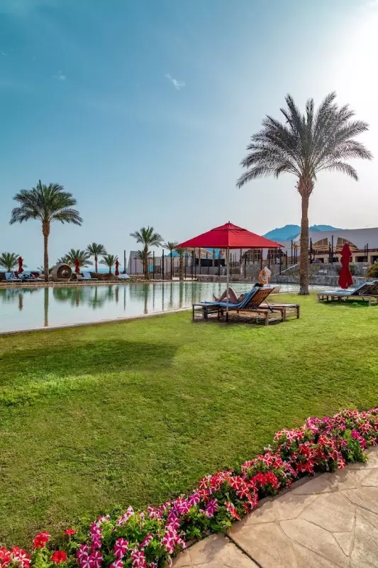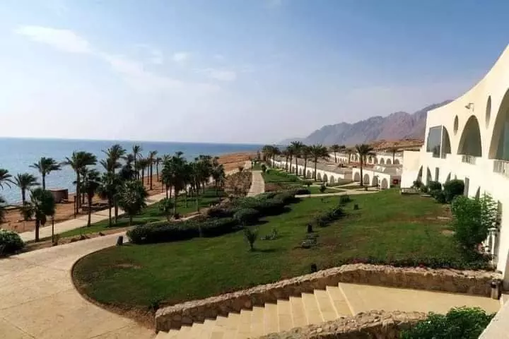 | الموقع | مدينة دهب – مطل على خليج العقبة تبلغ المساحة الإجمالية للأرض 197568 متر مربع يشغل منها الفندق ومبانيه 13154 م 2 وتبلغ نسبة المباني 6.7 % من إجمالي مساحة الأرض |