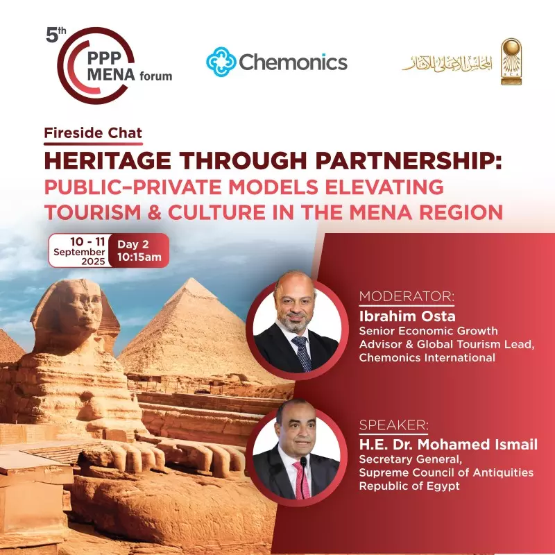 في إطار حرص وزارة السياحة والآثار على إبراز الجهود الوطنية الرائدة في صون التراث الثقافي والترويج للسياحة المستدامة، شارك الدكتور محمد إسماعيل خالد الأمين العام للمجلس الأعلى للآثار، في فعاليات المنتدى الدولي الخامس للشراكة بين القطاعين العام والخاص في منطقة الشرق الأوسط وشمال إفريقيا(PPP MENA Forum)، والذي عُقد مؤخراً في إمارة دبي بدولة الإمارات العربية المتحدة.
