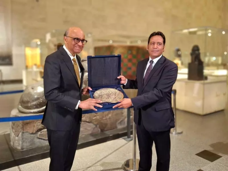 استقبل المتحف القومي للحضارة المصرية بالفسطاط ثارمان شانموجاراتنام رئيس جمهورية سنغافورة، يرافقه السيد دومينيك جوه سفير سنغافورة بالقاهرة، والوفد المرافق له، وذلك في إطار زيارته الرسمية الحالية لمصر.