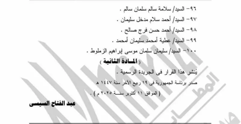 جاء ذلك وفق القرار الجمهوري المنشور في الجريدة الرسمية برقم 575 لسنة 2025.