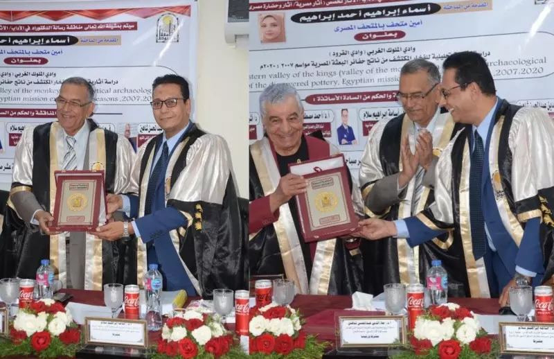 وعقب مناقشة امتدت لأكثر من ساعتين، قررت اللجنة بالإجماع منح الباحثة أسماء إبراهيم أحمد درجة الدكتوراه بمرتبة الشرف الأولى، تقديرًا لتميزها العلمي ودقتها في الربط بين التحليل الأثري والمقارنات الميدانية.