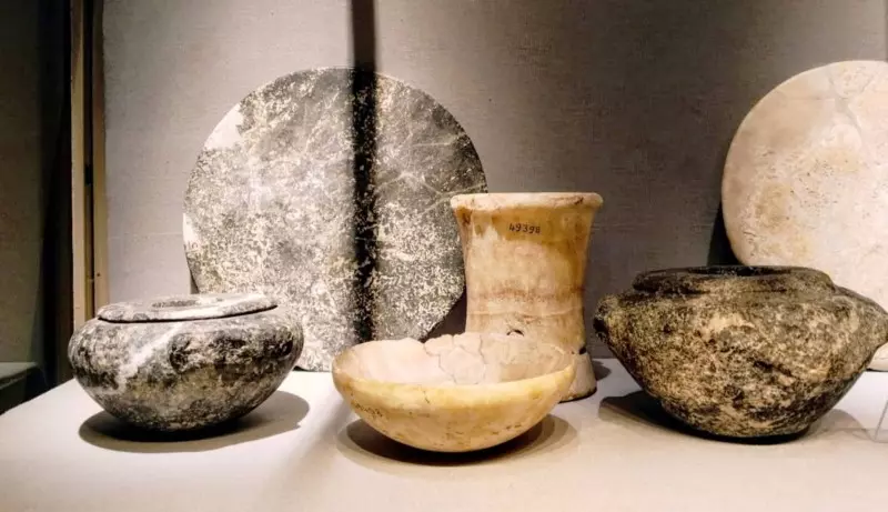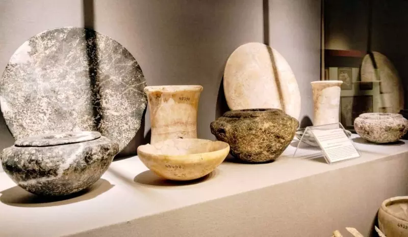 هذه الأواني، المنحوتة ببراعة من أحجار نادرة وقيمة (كالمرمر والبورفيري) تم جلبها من الصحراء المصرية عبر البعثات الملكية، لتُجسد مهارات الدولة وقدرتها على الحصول على هذه المواد الحجرية التي كانت حكرًا على البلاط الملكي.