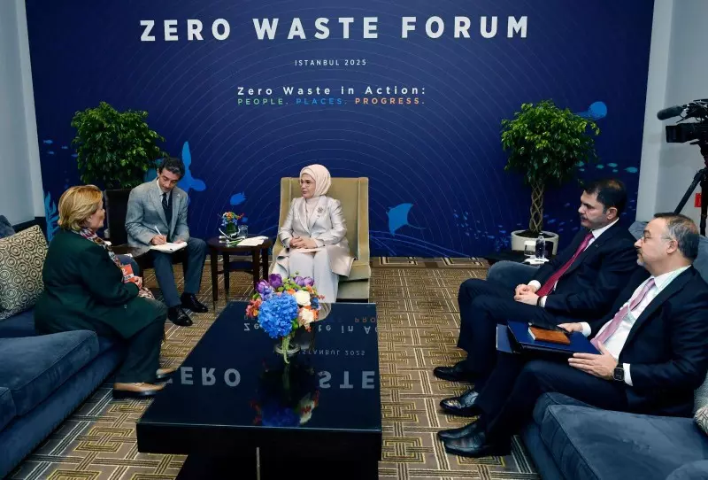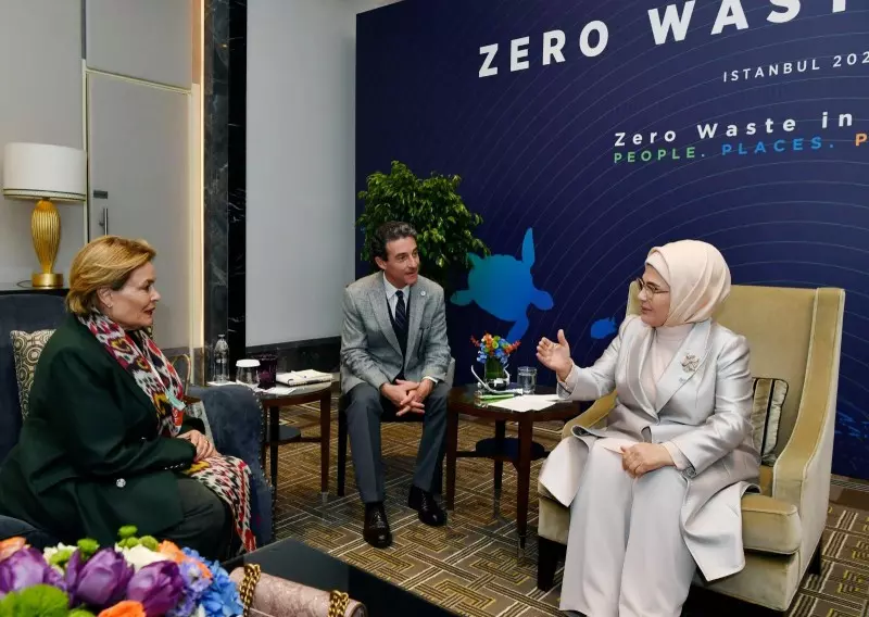 التقت السيدة الأولى في تركيا أمينة أردوغان، ممثلةً عن الرئيس التركي رجب طيب أردوغان، بعدد من المشاركين الرائدين في مجال القضايا البيئية، وذلك ضمن فعاليات المنتدى الدولي لصفر نفايات الذي شارك فيه ممثلون من 63 دولة وعدد من كبار المسؤولين والخبراء البيئيين من مختلف أنحاء العالم.
