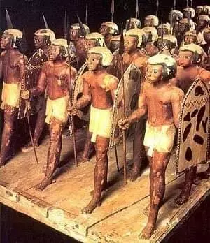 على اليسار البطل العظيم تحتمس الثالث وعلى اليمين أحد فرق المشاة