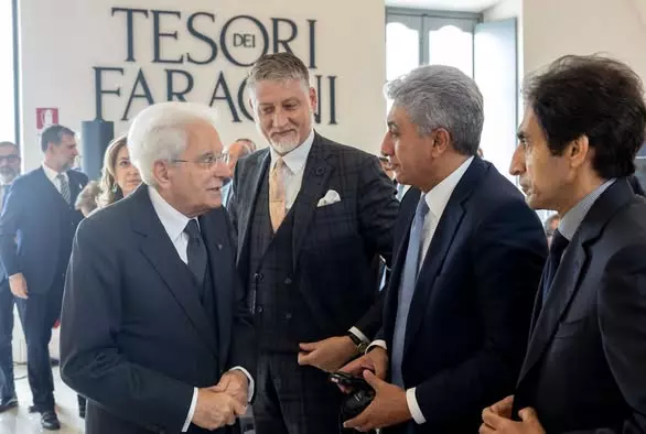 افتتح اليوم فخامة سيرجيو ماتاريلا، رئيس جمهورية إيطاليا، معرض “كنوز الفراعنة” المقام بقاعة Scuderie del Quirinale التابعة لمؤسسة الرئاسة الإيطالية في العاصمة روما، وذلك بحضور شريف فتحي وزير السياحة والآثار المصري، وأليسندرو جولي وزير الثقافة الإيطالي، والسفير بسام راضي سفير مصر لدى إيطاليا، والدكتور محمد إسماعيل خالد الأمين العام للمجلس الأعلى للآثار، والدكتور محمد شعبان معاون وزير السياحة والآثار للتحول الرقمي، والدكتور طارق العوضي المشرف علي المعرض
