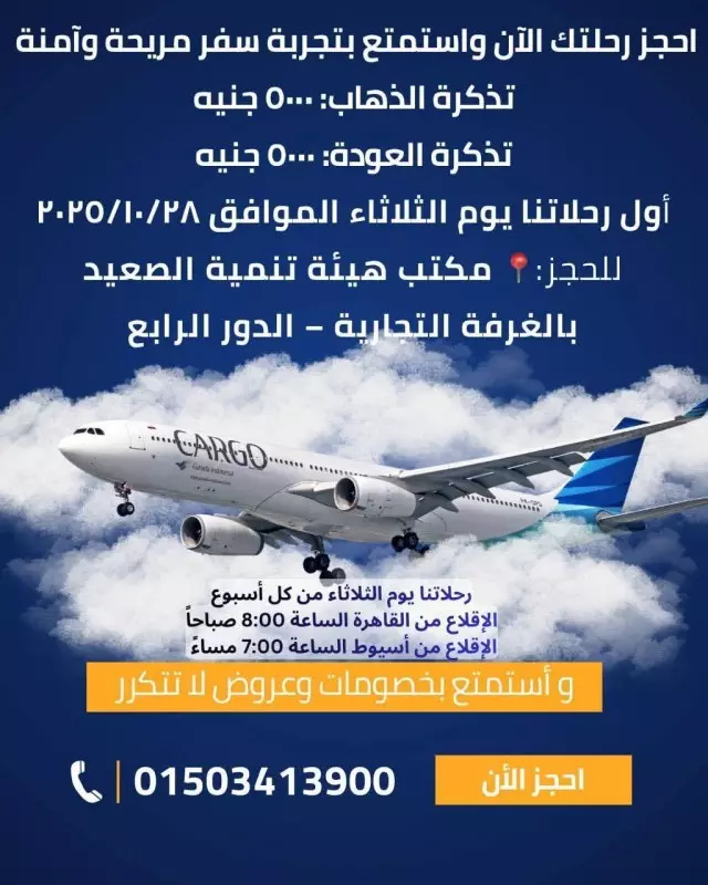 تنطلق يوم الثلاثاء المقبل 28 أكتوبر الجاري أولى الرحلات الجوية الأسبوعية بين القاهرة وأسيوط، في خطوة تهدف إلى خدمة أبناء محافظة المنيا وتيسير حركة السفر والتنقل، وذلك في إطار التعاون المثمر بين محافظتي المنيا وأسيوط.