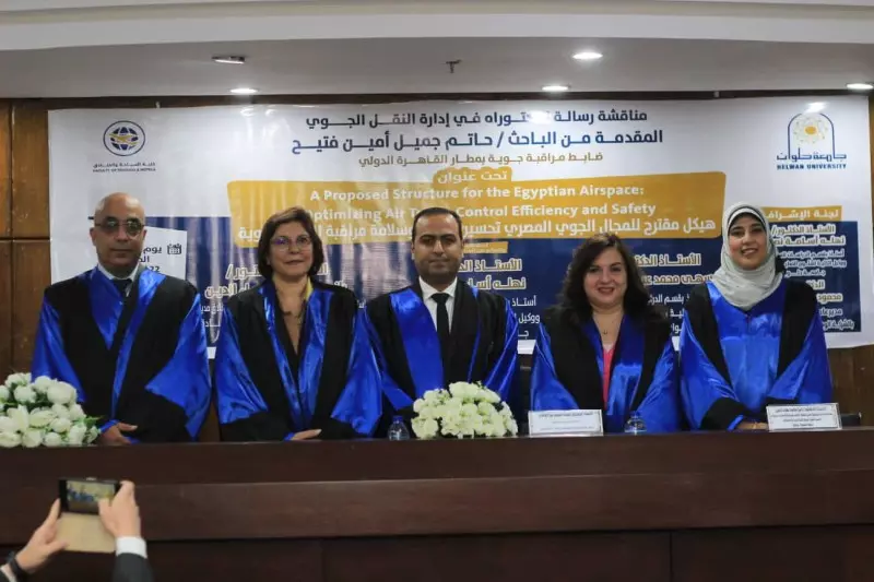 وأشادت اللجنة بالجهد البحثي الكبير الذي بذله الباحث، وبالنتائج التطبيقية التي توصل إليها في مجاله الحيوي، حيث قدّم تصورًا علميًا متكاملًا لإعادة هيكلة المجال الجوي المصري بما يحقق أعلى مستويات الكفاءة التشغيلية والسلامة الجوية، وبما يتماشى مع التطورات التقنية والمعايير الدولية لمنظمة الطيران المدني الدولي (ICAO).