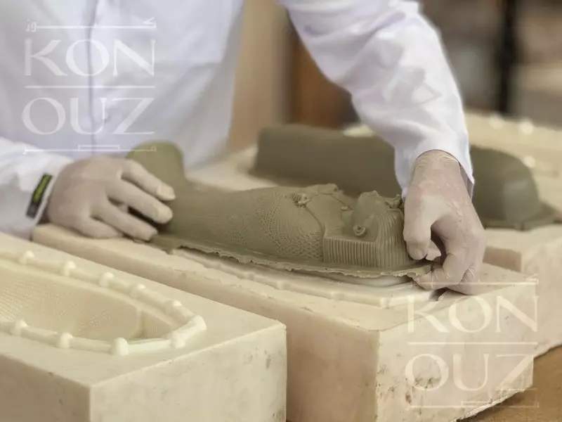 وأوضح اللواء هشام شعراوي رئيس مجلس إدارة شركة كنوز مصر للنماذج الأثرية، أن تصميم الدعوة مر بعدة مراحل دقيقة تعكس حساسية العمل الفني المُستمد من إرث مصر الحضاري، بدأت العملية من قسم النحت، حيث تولّى الفنانون تجسيد الزخارف والرموز والكتابات الهيروغليفية بدقة التماثل الأصلية، ثم انتقلت إلى مراحل الاستنساخ فـالتذهيب فـالتلوين، قبل أن يُغلّف التابوت من الداخل بقماش المخمل الفاخر، لتظهر في صورتها النهائية التي تليق بعظمة الاحتفالية ومكانة المتحف.