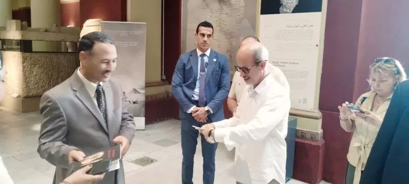 كان في استقبال سيادته الدكتور علي عبد الحليم علي مدير عام المتحف المصري وأمناء آثار المتحف حيث تم تنظيم جولة إرشادية متحفية له داخل قاعات العرض المتحفي المختلفة. وقد شملت الجولة الإرشادية التي نُظمت لهم استكشاف قاعات العرض المتحفي المتنوعة، حيث شاهدوا مجموعة فريدة من الآثار التي تروي تاريخ الحضارة المصرية القديمة كاملاً، من عصور ما قبل التاريخ وحتى نهاية العصرين اليوناني والروماني.