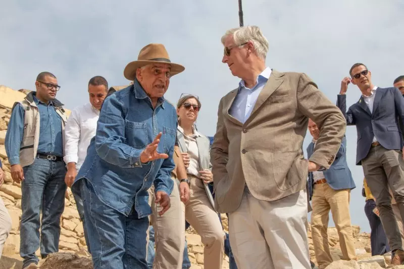 في زيارة تُجسد اهتمام العالم المتواصل بالحضارة المصرية العريقة، استقبل عالم الآثار المصرية الشهير الدكتور زاهي حواس، جلالة الملك فيليب، ملك مملكة بلجيكا، خلال جولة تفقدية لموقع حفائر مؤسسة زاهي حواس للآثار والتراث، بالتعاون مع المجلس الأعلى للآثار، في جبانة الملك تتي بمنطقة سقارة الأثرية.