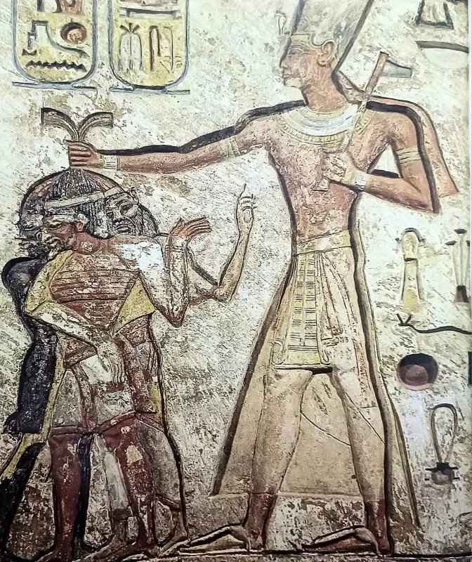 والمصري القديم لا يقول الجيش أبدا، بل يقول … جــيـشـــنـــــــــا… لإنه مصدر الفخر والعزة ورمز الحفاظ على الوطن، وهو الذي يعتمد عليه المصري في صنع فخره واعتزازه بنفسه وأرضه المقدسة، فنجده يخلد مبدأ ابتدعه الملك العظيم رمسيس الثالث حينما قال ونفذ فعليا : “قطع اليد التي تمتد على مصر” حيث خلد في معبده بمدينة هابو بالأقصر تصوير قطع أيادي الأعداء ممن سولت لهم نفسهم محاولة الاعتداء على مصر وجيشها؛ وليس فقط قطع الأيادى بل أيضاً قطع العضو الذكرى والعد به لرمزية ذلك أيضا بمعنى أنه تم إجتثاث بذرة من تجرأ وفكر في الاعتداء على أرض مصر أو أرض الرب كما سماها المصري