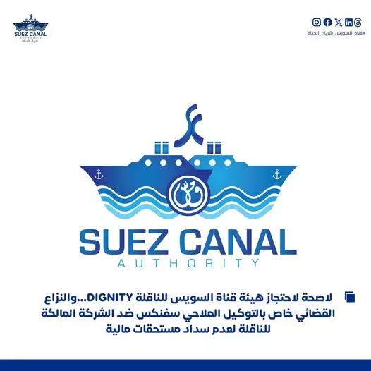 نفت هيئة قناة السويس فى بيان رسمى ما تردد  من أخبار متداولة حول احتجاز ها للناقلة” DIGNITY” بغاطس ميناء السويس البحري،