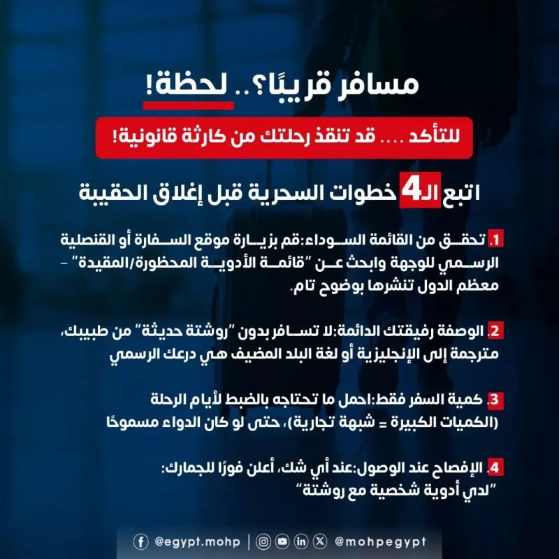مسافر قريبًا؟ .. انتبه.. الدواء المصرح به في مصر قد يكون ممنوعًا في البلد التي تسافر لها.. اتبع هذه الخطوات قبل إغلاق حقيبتك 🙏👇🏻
