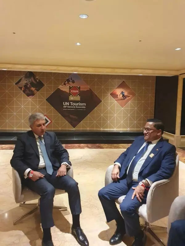 في إطار مشاركته في أعمال اجتماعات الدورة السادسة والعشرين للجمعية العامة لمنظمة الأمم المتحدة للسياحة (UN Tourism)، التي تستضيفها المملكة العربية السعودية بمدينة الرياض خلال الفترة من 7 إلى 11 نوفمبر الجاري، عقد شريف فتحي، وزير السياحة والآثار، اجتماعات ثنائية مع كل من السيد Blendi Gonxhja وزير السياحة والثقافة والرياضة في جمهورية ألبانيا، وVijitha Herath وزير الخارجية والتوظيف الخارجي والسياحة في سريلانكا، وذلك لبحث سبل تعزيز التعاون المشترك في مجالات السياحة والآثار.