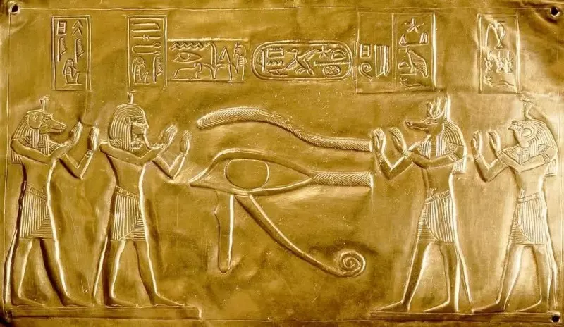 ومن أبرز هذه الكنوز اللوحة الذهبية للملك بسوسنس الأول، التي تُعد تحفة فنية فريدة يبلغ ارتفاعها 16.6 سم، وتتميز بنقش بديع يُجسّد أبناء حورس الأربعة يتوسطهم عين الودچات، رمز الحماية والقداسة في العقيدة المصرية القديمة.