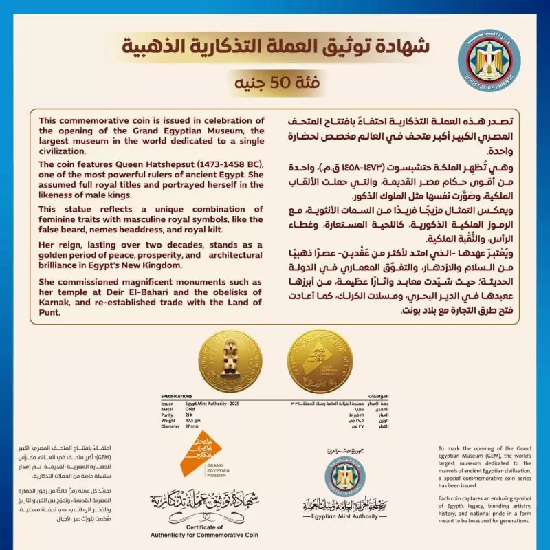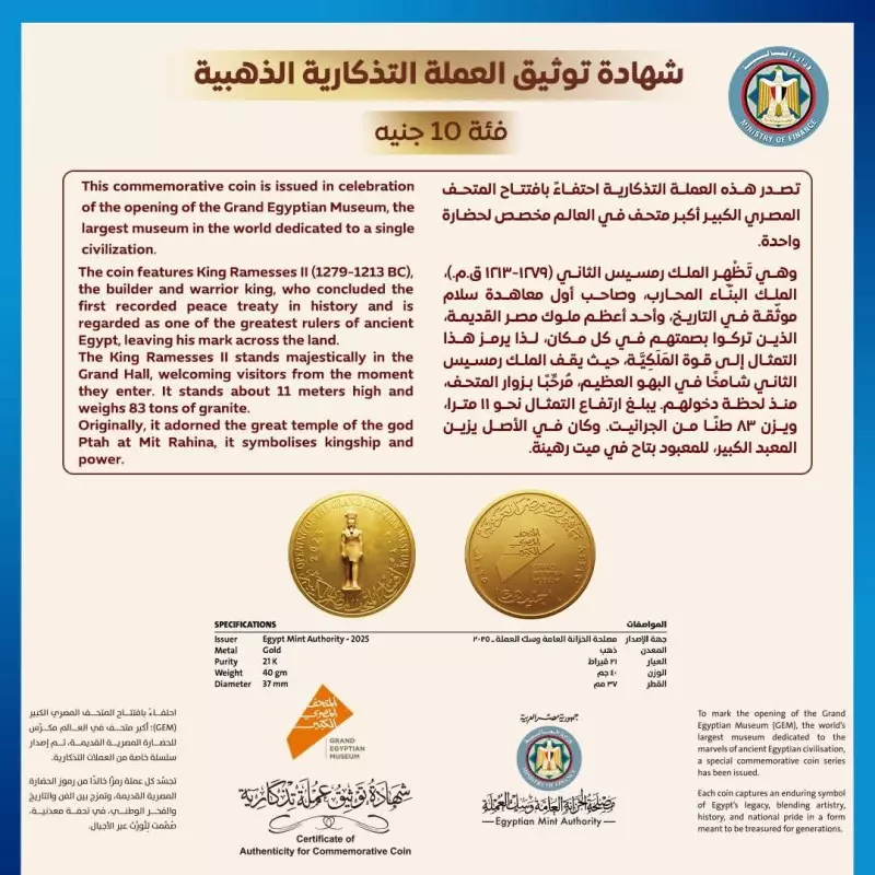 أشار إلى أننا نستهدف التوسع في بيع العملات التذكارية من خلال الموقع الإلكتروني، استجابة للطلب الكبير عليها الذى يعكس المكانة العالمية للمتحف المصرى الكبير.