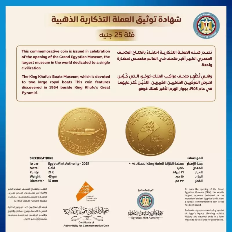 عملة المتحف المصري فئة 25 جنيه ذهب