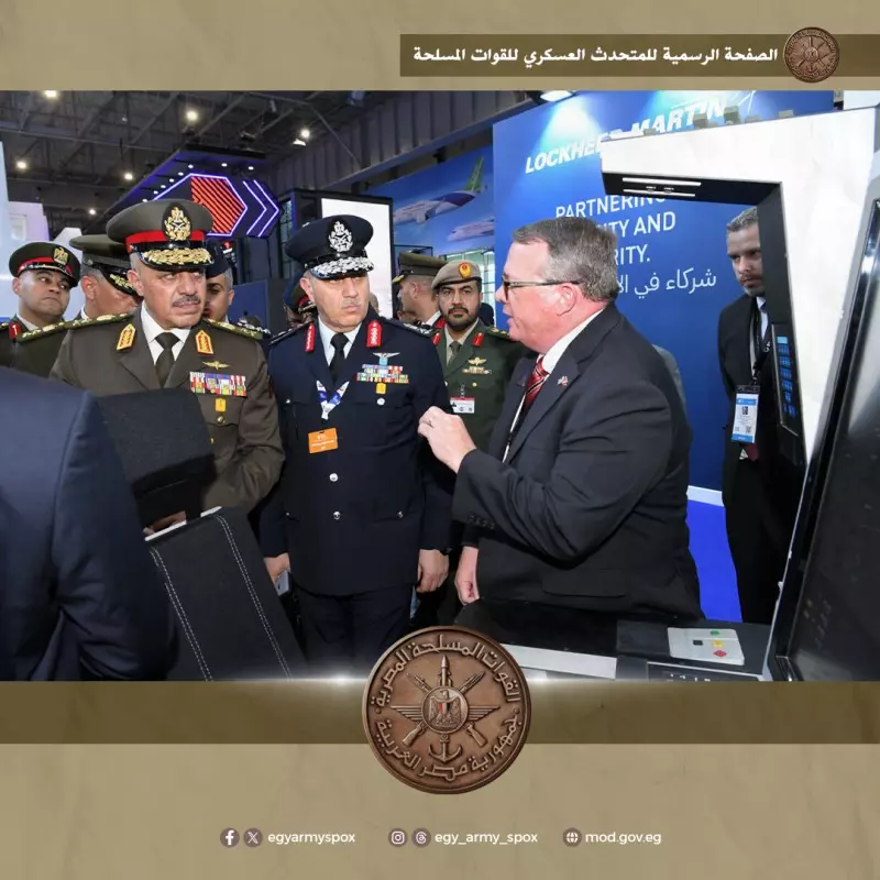 حيث قام الفريق أحمد خليفة بتفقد المعرض الذى يتضمن أحدث المنظومات العالمية فى مجالات تكنولوجيا الطيران والفضاء ، مشيداً بمستوى المعرض فى هذه النسخة وما يحظى به من ثقة مختلف المشاركين من كافة الدول .