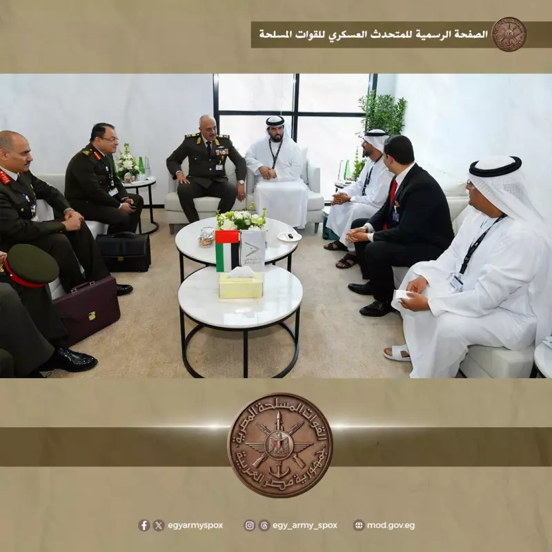 وعلى هامش فعاليات المعرض إلتقى الفريق أحمد خليفة رئيس أركان حرب القوات المسلحة الفريق الركن مهندس عيسى سيف محمـد المزروعى رئيس أركان القوات المسلحة الإماراتية وتناول اللقاء مناقشة عدد من الموضوعات ذات الإهتمام المشترك وسبل تعزيز علاقات التعاون العسكرى بين القوات المسلحة المصرية والإماراتية .