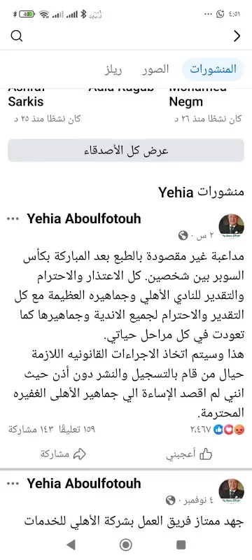 بيان النادى الأهلى ضد تجاوزات يحيى أبو الفتوح ، نائب الرئيس التنفيذي للبنك الأهلى المصرى رئس