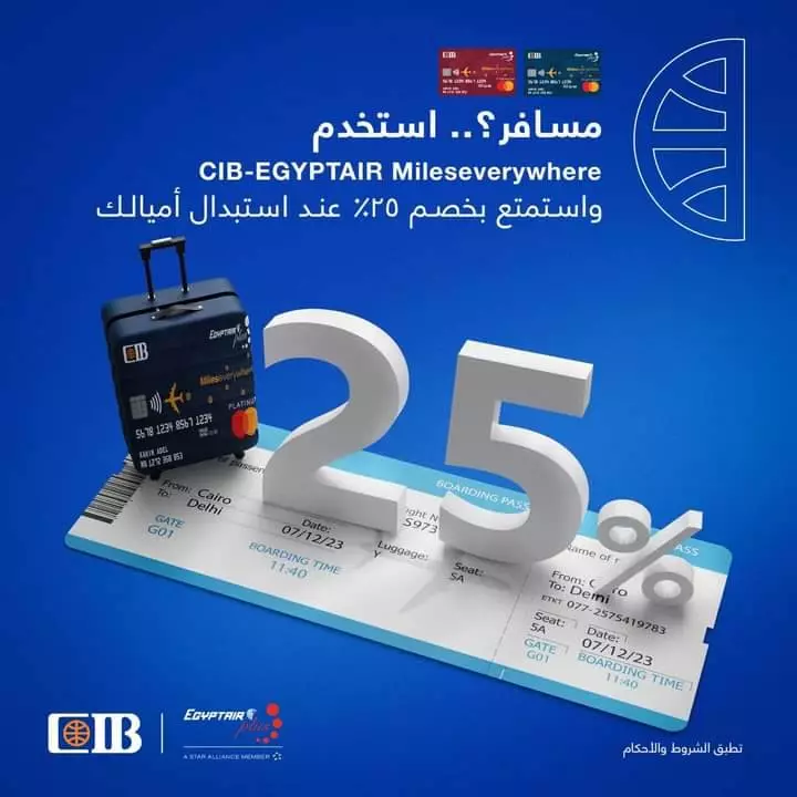 نوهت الشركة لعملائها أعضاء برنامج EGYPTAIR-CIB MilesEverywhere، بأن الشراكة بين شركة مصر للطيران والبنك التجاري الدولي (CIB) فيما يخص بطاقات EGYPTAIR-CIB MilesEverywhere قد وصلت إلى نهايتها بانتهاء العقد الموقع بين الطرفين في 31 ديسمبر 2025. وبناءً على ذلك، ستتوقف جميع المزايا والخصائص المرتبطة ببطاقات MilesEverywhere اعتبارًا من ذلك التاريخ.