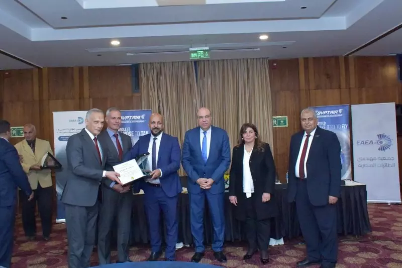 تحت رعاية وبحضور الدكتور سامح الحفني وزير الطيران المدني والطيار أحمد عادل رئيس الشركة القابضة لمصر للطيران، تم تكريم كوادر شركة مصر للطيران للصيانة والأعمال الفنية فى حفل نظمّته جمعية مهندسي الطائرات المصرية.