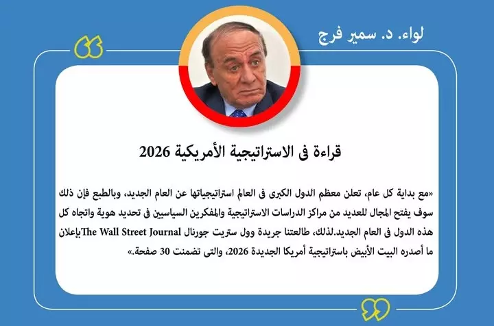 “اللواء الدكتور سمير فرج ” يكتب لـ ” المحروسة نيوز ” : قراءة فى الإستراتيجية الأمريكية 2026