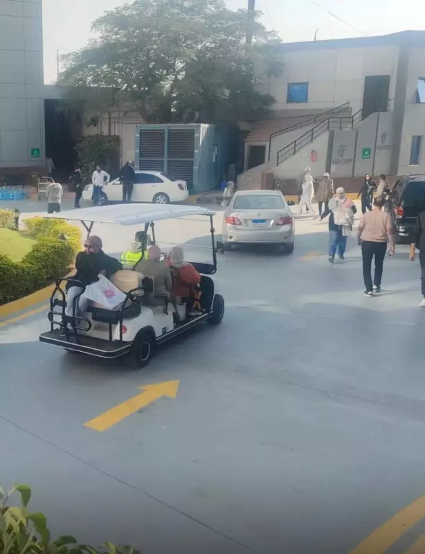 وأكد الدكتور أيمن صلاح ، أن خدمة الجولف كار تُقدَّم وفقًا لإجراءات السلامة المعتمدة داخل المستشفى، مشيرًا إلى إمكانية الاستفادة منها في التنقل من البوابة الخارجية إلى الأقسام العلاجية المختلفة والعكس، بما يضمن سهولة الوصول وسرعة الحركة داخل المنشأة.