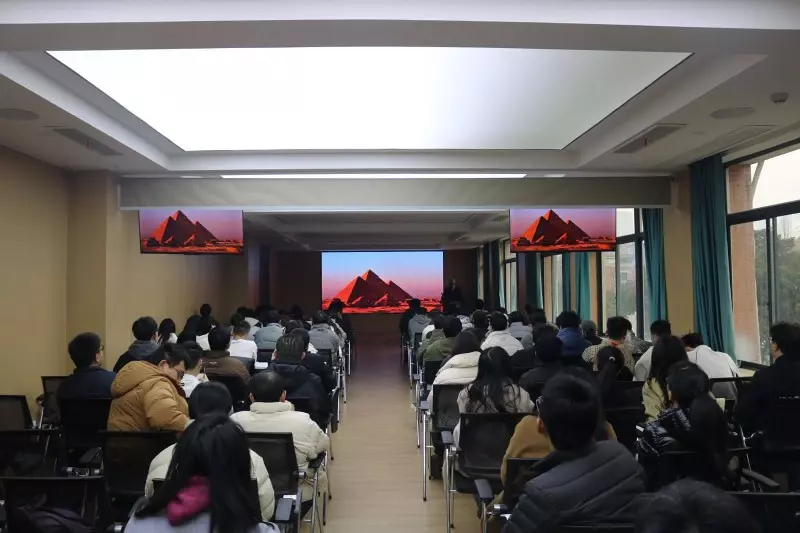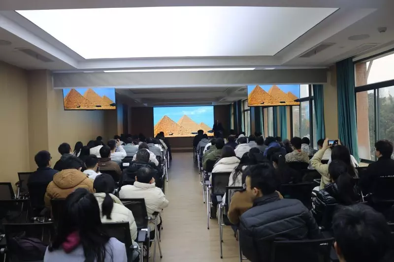 وشهدت الزيارة فعالية علمية هامة، حيث نظم البروفيسور “يانغ” (Prof. Yang)، من كلية الهندسة بالجامعة، مناظرة تخصصية حضرها نخبة من الأساتذة والطلاب، تناولت لغز بناء هرم خوفو. وقد استعرض البروفيسور “يانغ” نظريته التي تفترض استخدام “المجاري المائية” كوسيلة لنقل الأحجار الضخمة في بناء الهرم الأكبر.